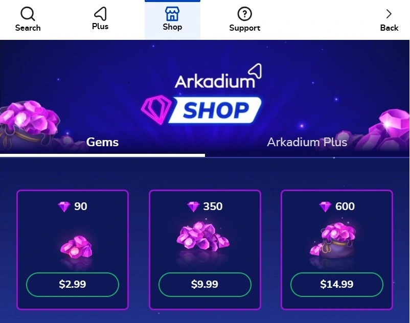 Sign in to your Arkadium profile and select the gems you’d like to purchase.