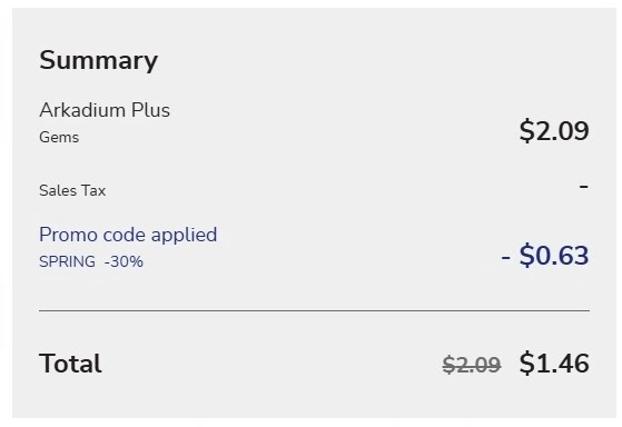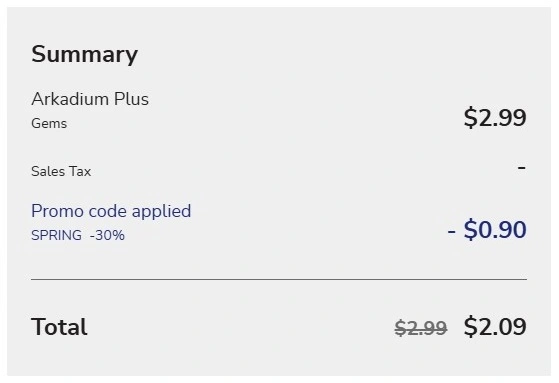 Current Arkadium Plus or Arkadium Advantage subscribers who use the promo code SPRING at checkout will see the 30% savings applied to the already 30% discounted price.