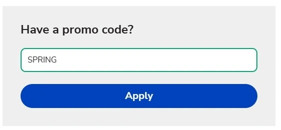 At checkout, enter promo code SPRING and click the "Apply" button